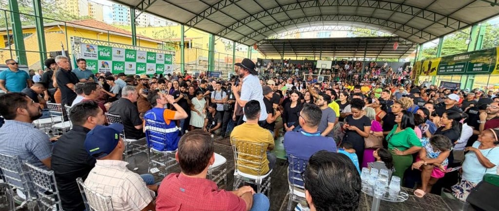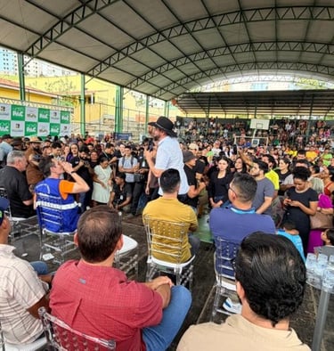 O evento, realizado na quadra da Escola Domingos Cardoso, no Residencial Alto Bonito, reuniu uma multidão e autoridades de peso. O palco foi composto pelo Deputado Federal Keniston Braga, pelo secretário de Habitação Aroldo Leiser, além de um expressivo grupo de vereadores, incluindo Léo Márcio, Leandro do Chiquito, Zé do Bode, Fred Sanção e Zé da Lata, reforçando a unidade política em prol do desenvolvimento do município.