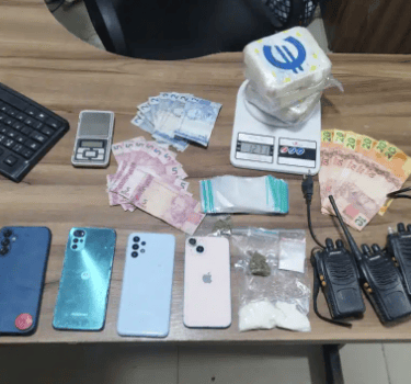 Denúncia anônima levou a Polícia Militar até residência onde também foram apreendidos dinheiro, balanças de precisão, celulares e rádios comunicadores