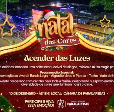 A partir desta quarta-feira (10), o estacionamento externo da Câmara Municipal de Parauapebas vai ganhar um brilho especial: é o início do Natal das Cores, um dos momentos mais esperados do ano por quem ama luz, música boa e aquele clima gostoso de festa.